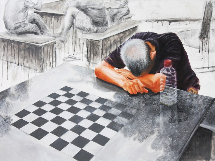 Old Man at Chinatown, 2010 | Mixed Media on Canvas | 3′ x 4′Self / Buddha, 2010 | Mixed Media on Canvas | 3′ x 4′Curled, 2010 | Mixed Media on Canvas | 4′ x 3′Internal / External I, 2010 | Mixed Media on Cardboard | 2′ x 3′Internal / External II, 2011 | Mixed Media on Canvas | 2′ x 3′Internal / External III, 2011 | Acrylic on Canvas | 4′ x 6′The Artist, 2011 | Mixed Media on Canvas | 6′ x 3′Decay, 2011 | Mixed Media on Canvas | 3′ x 4′To Sow Again, 2011 | Mixed Media on Canvas | 4′ x 3′Trailblazer, 2011 | Acrylic on Canvas | 3′ x 2′Untitled, 2011 | Acrylic on Canvas | 6′ x 4′