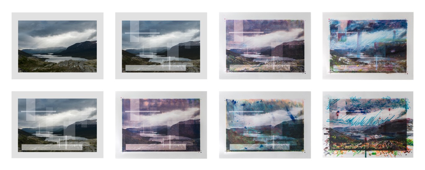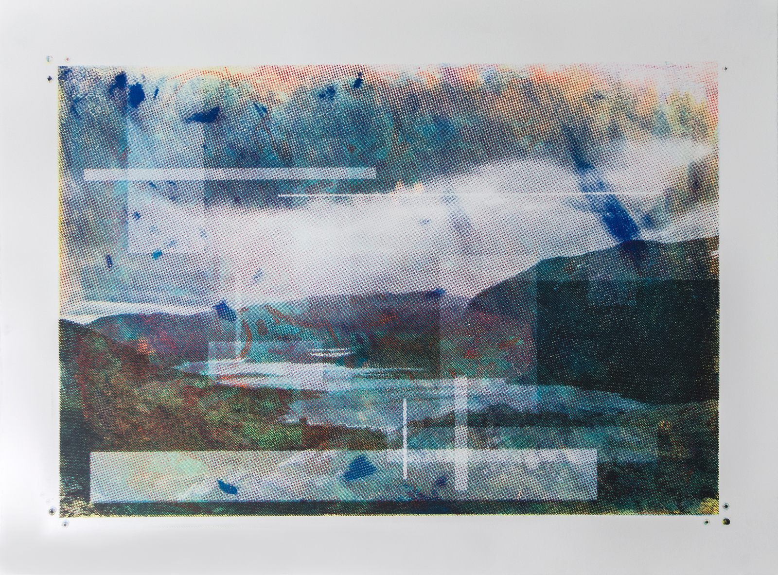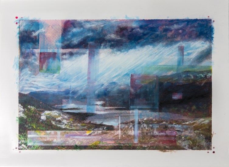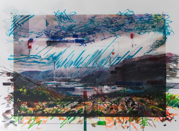 Attempts at Stilling my Breath Attempts at Stilling my Breath, 2015 | Inkjet print, screen print, color pencil, monotype, watercolor, pastel, acrylic, marker | 48″ x 132″ Related